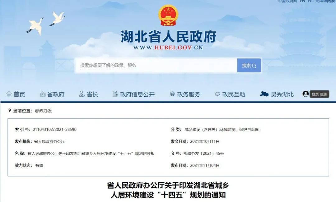 文件《湖北省城乡人居环境建设“十四五”规划》