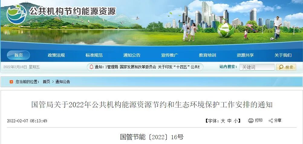 文件《国管局关于2022年公共机构能源资源节约和生态环境保护工作安排的通知》