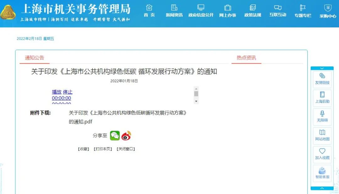 文件《上海市公共机构绿色低碳循环发展行动方案》