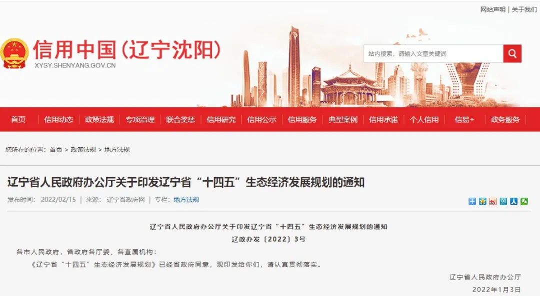 文件《辽宁省“十四五”生态经济发展规划的通知》