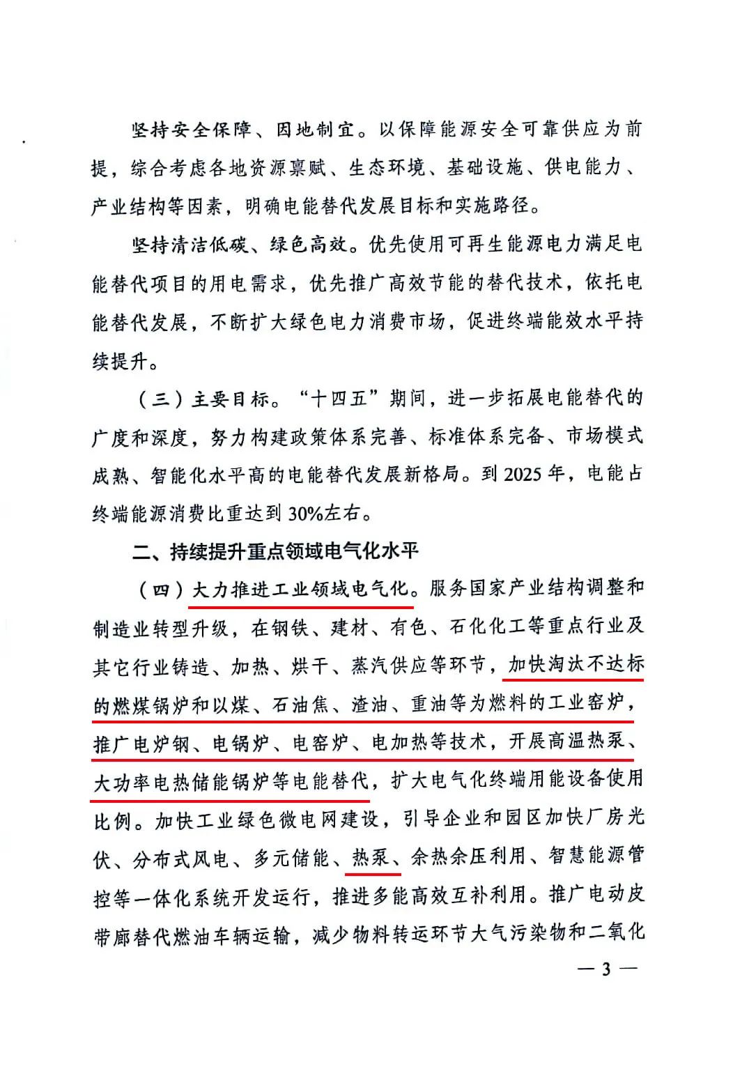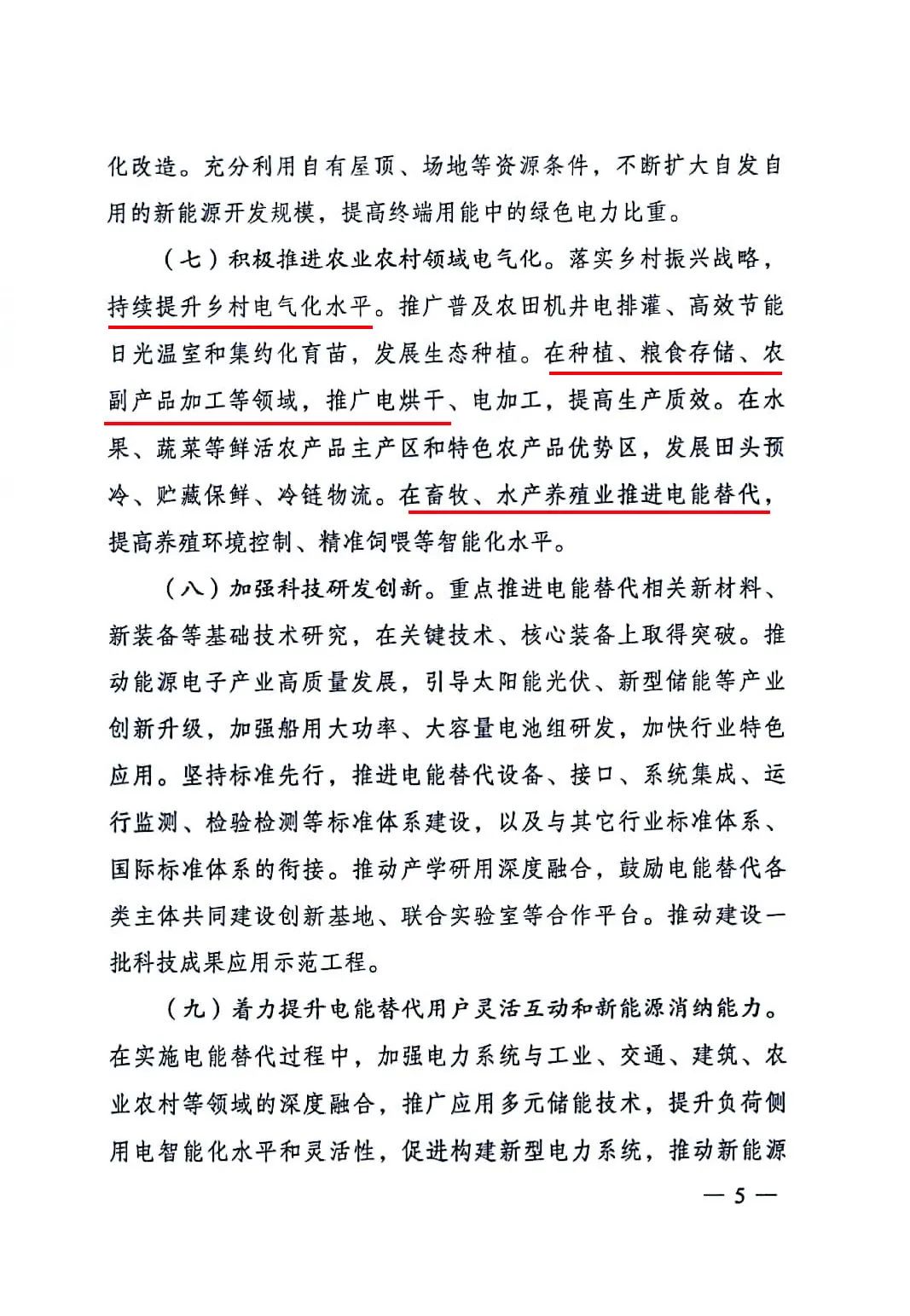 最新,3月9日,国家发展改革委、国家能源局、工业和信息化部、财政部、生态环境部、住房城乡建设部、交通运输部、农业农村部、国家机关事务管理局、中国民用航空局等10部门联合印发《关于进一步推进电能替代的指导意见》。服务国家产业结构调整和制造业转型升级,在钢铁、建材、有色、石化化工等重点行业及其它行业铸造、加热、烘干、蒸汽供应等环节,加快淘汰不达标的燃煤锅炉和以煤、石油焦、渣油、重油等为燃料的工业窑炉,推广电炉钢、电锅炉、电窑炉、电加热等技术,开展高温热泵、大功率电热储能锅炉等电能替代,扩大电气化终端用能设备使用比例。加快工业绿色微电网建设,引导企业和园区加快厂房光伏、分布式风电、多元储能、热泵、余热余压利用、智慧能源管控等一体化系统开发运行,推进多能高效互补利用。持续推进清洁取暖,在现有集中供热管网难以覆盖的区域推广电驱动热泵、蓄热式电锅炉、分散式电暖器等电采暖在市政供热管网末端试点电补热。鼓励有条件的地区推广冷热联供技术,采用电气化方式取暖和制冷。鼓励机关、学校、医院等公共机构建筑和办公楼、酒店、商业综合体等大型公共建筑围绕减碳提效,实施电气化改造。在种植、粮食存储、农副产品加工等领域,推广电烘干、电加工,提高生产质效。在水果、蔬菜等鲜活农产品主产区和特色农产品优势区,发展回头预冷、贮藏保鲜、冷链物流。在畜牧、水产养殖业推进电能替代,提高养殖环境控制、精准饲喂等智能化水平。